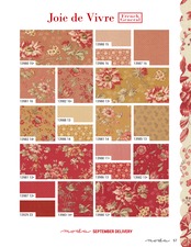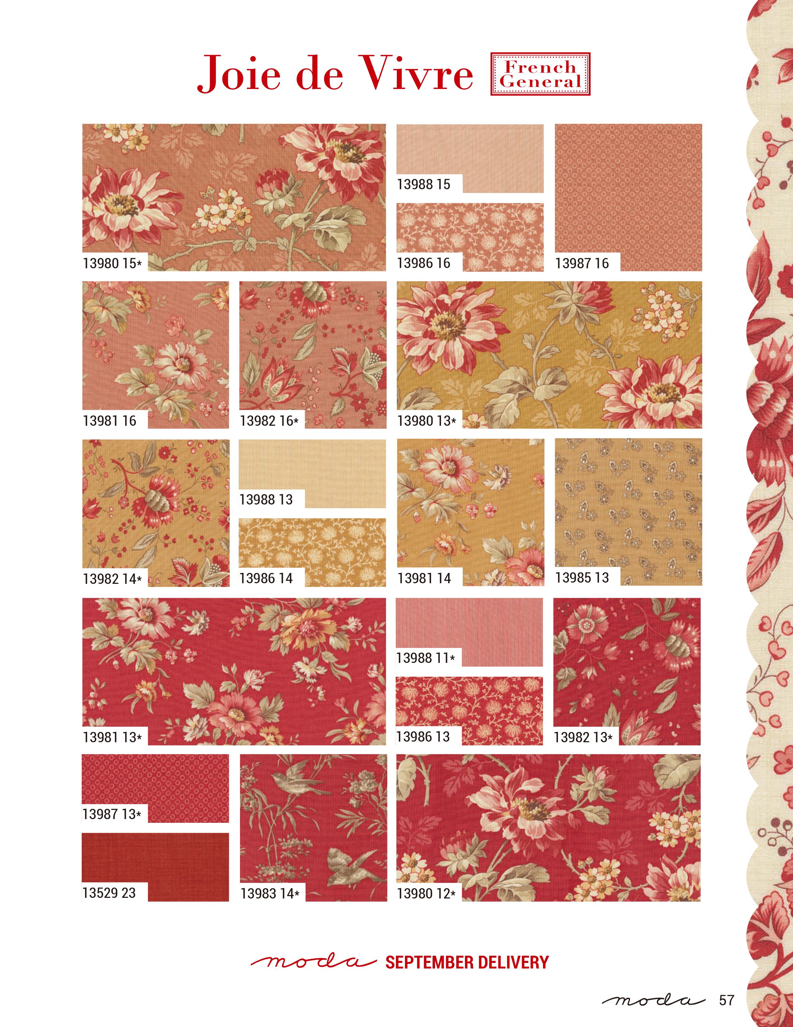 過去15年間にModaと共同で制作したすべてのコレクションの中で、このシリーズは私たちのお気に入りであり、過去のコレクションとも完璧に調和します。新しい「Joie de Vivre」ブロデリーパネルは、コットンとリネンの混紡生地にレッドまたはナチュラルカラーでプリントされており、美しく、ステッチしやすいベースとなっています。このブロックを切り取って、かわいいベビーキルトや、Joie de Vivreジェリーロールを使った大きめのキルトを作りましょう。