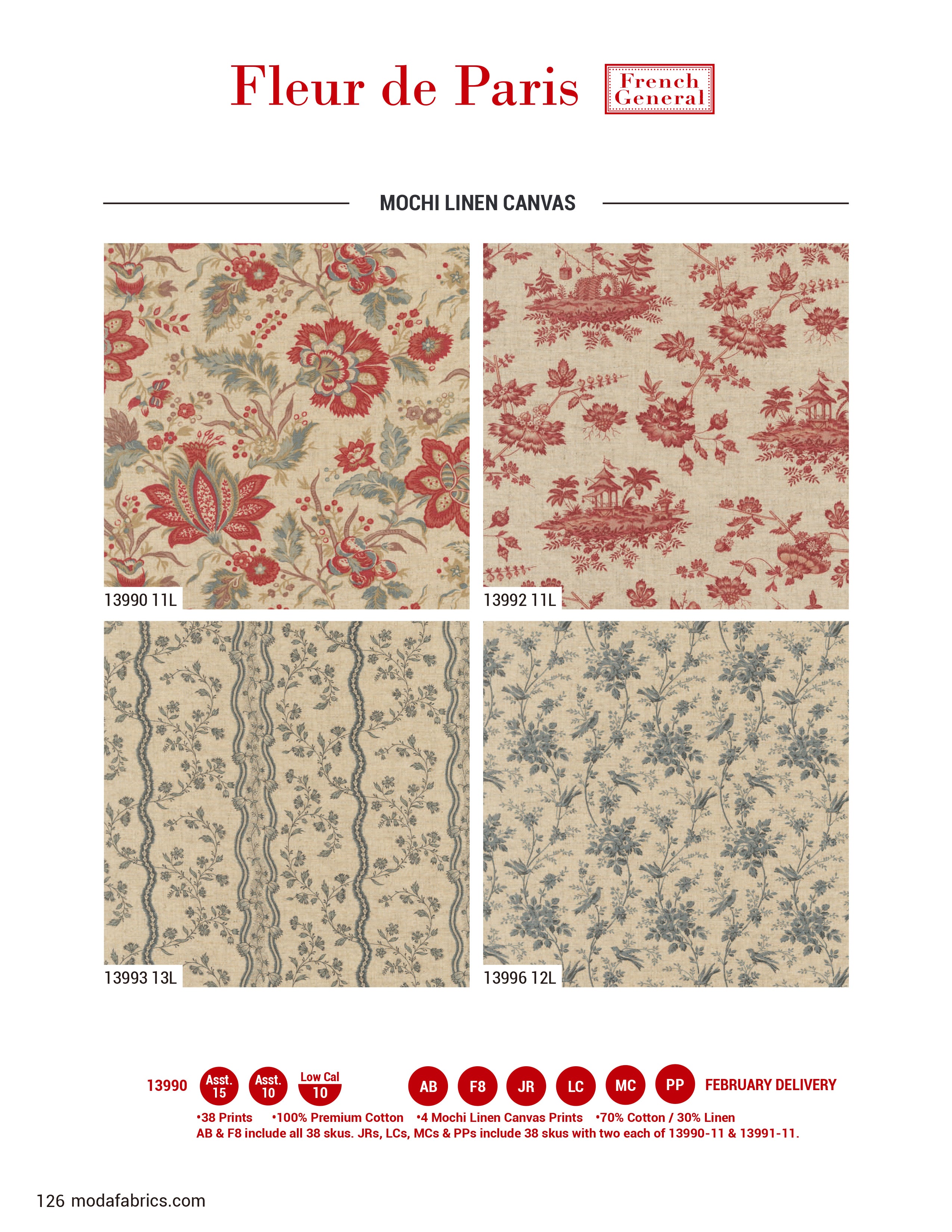 USAコットンのブランド《moda fabrics》のFrench Generalカットクロスセットです。